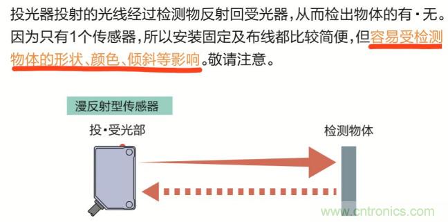 并且廠家的產品資料上明確的寫出一定要注意這類傳感器非常容易受到檢測物體的形狀、顏色和傾斜等影響。