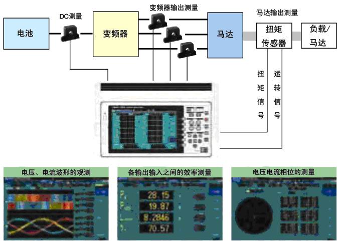 為了測量馬達/變頻器的效率,首先需要同時高精度的測量變頻器的輸入和輸出功率后計算效率。此時,可測量高電壓/大電流的以及增強了絕緣功能、擴大頻率特性的功率計顯得尤為重要。電壓測量方面對于AC1000輸入的呼聲越來越高。電流測量方面,有可測量從微小電流到500A的大電流的鉗式電流傳感器。之前所謂的高精度功率計,僅僅是在分流器輸入方面實現了而已,如果要滿足上述所有要求一直是非常困難的。
